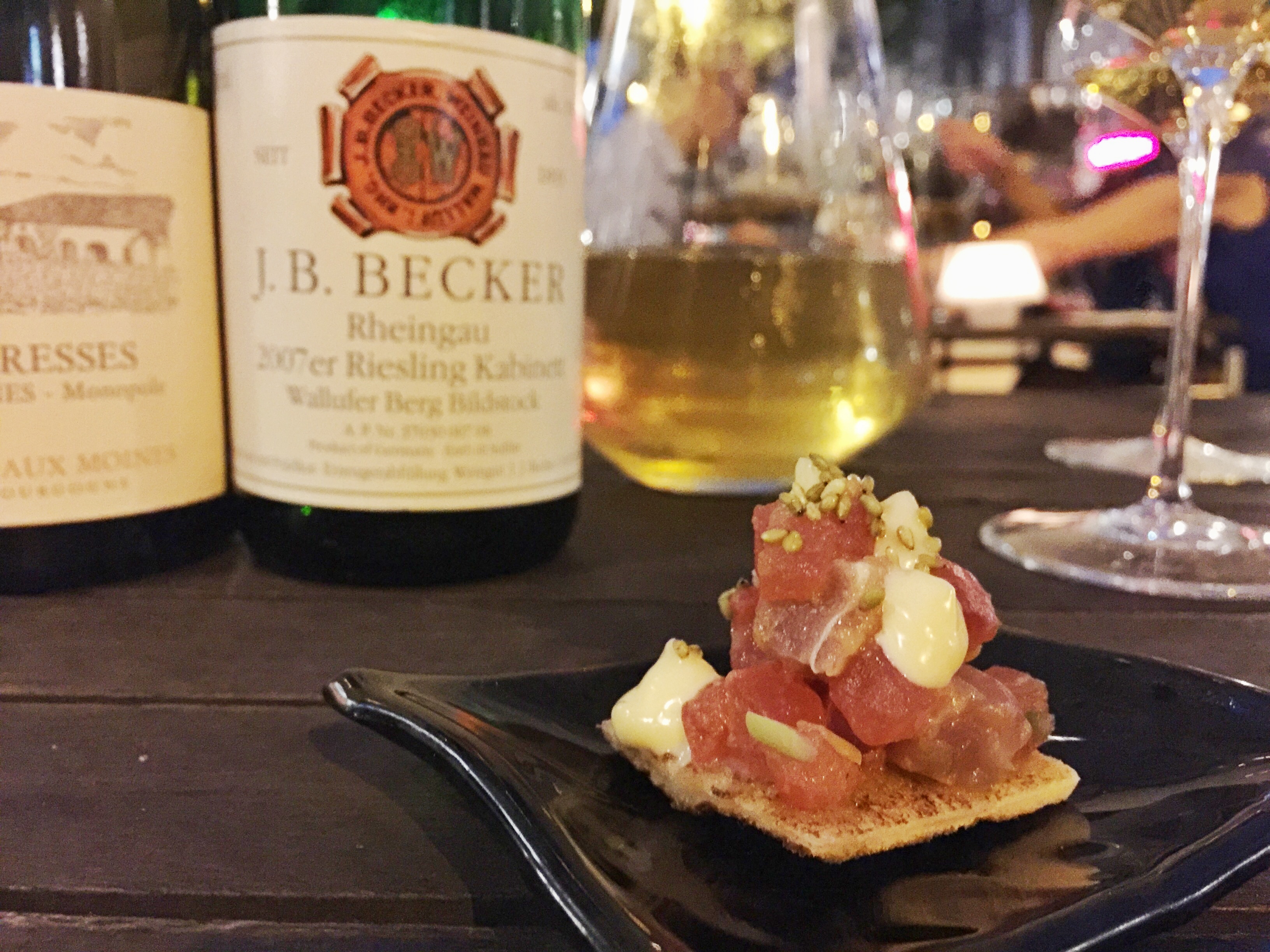 Der J.B. kam blind ins Glas – und hat Toni und mich erstmal überrascht. Sehr reife Farbe, eine Nase wie eine Spätlese, Säure sehr angenehm und schön eingebunden – Strange. Niemals auf Kabinett getippt. Trinkflow und das Grinsen auf dem Gesicht waren jedenfalls schonmal da.