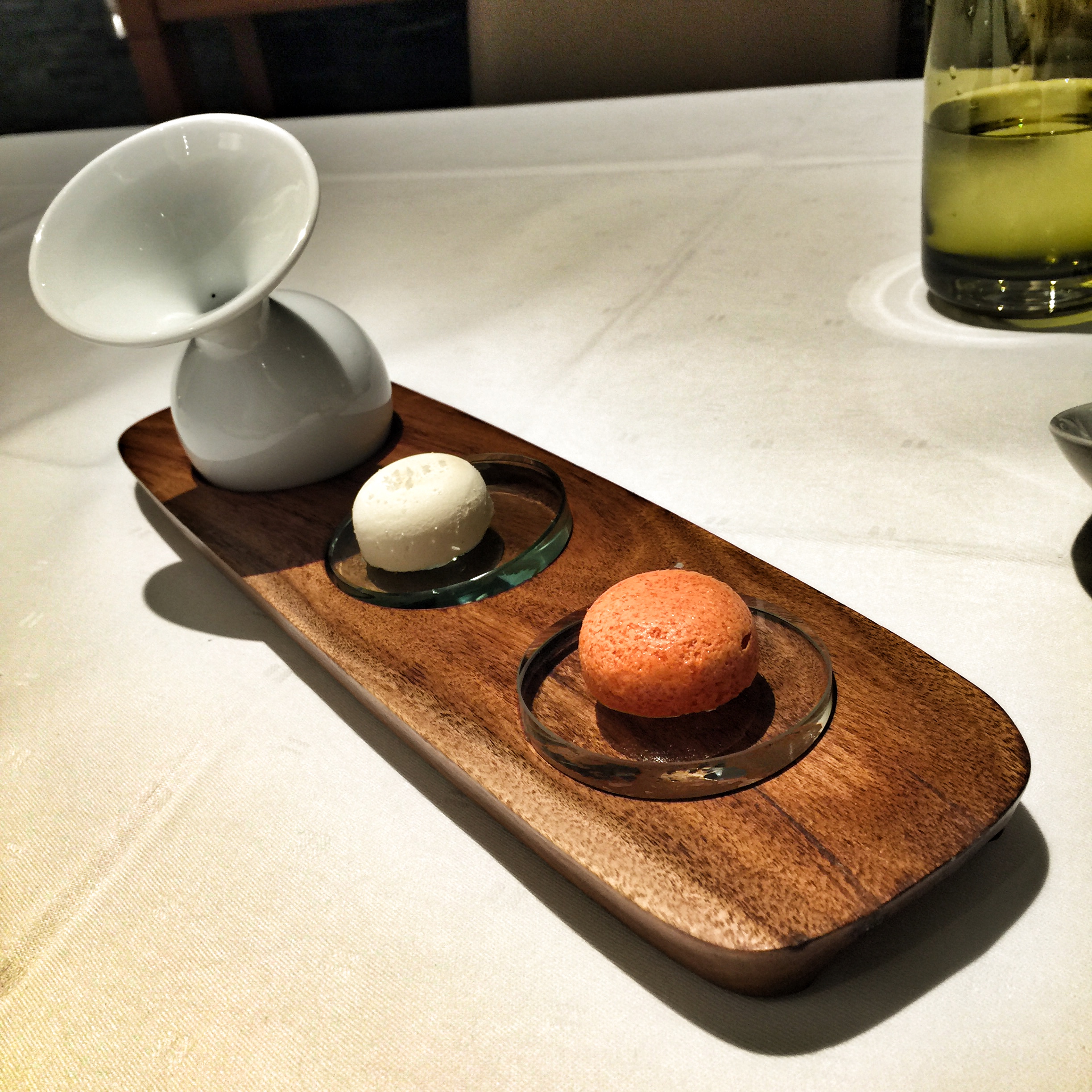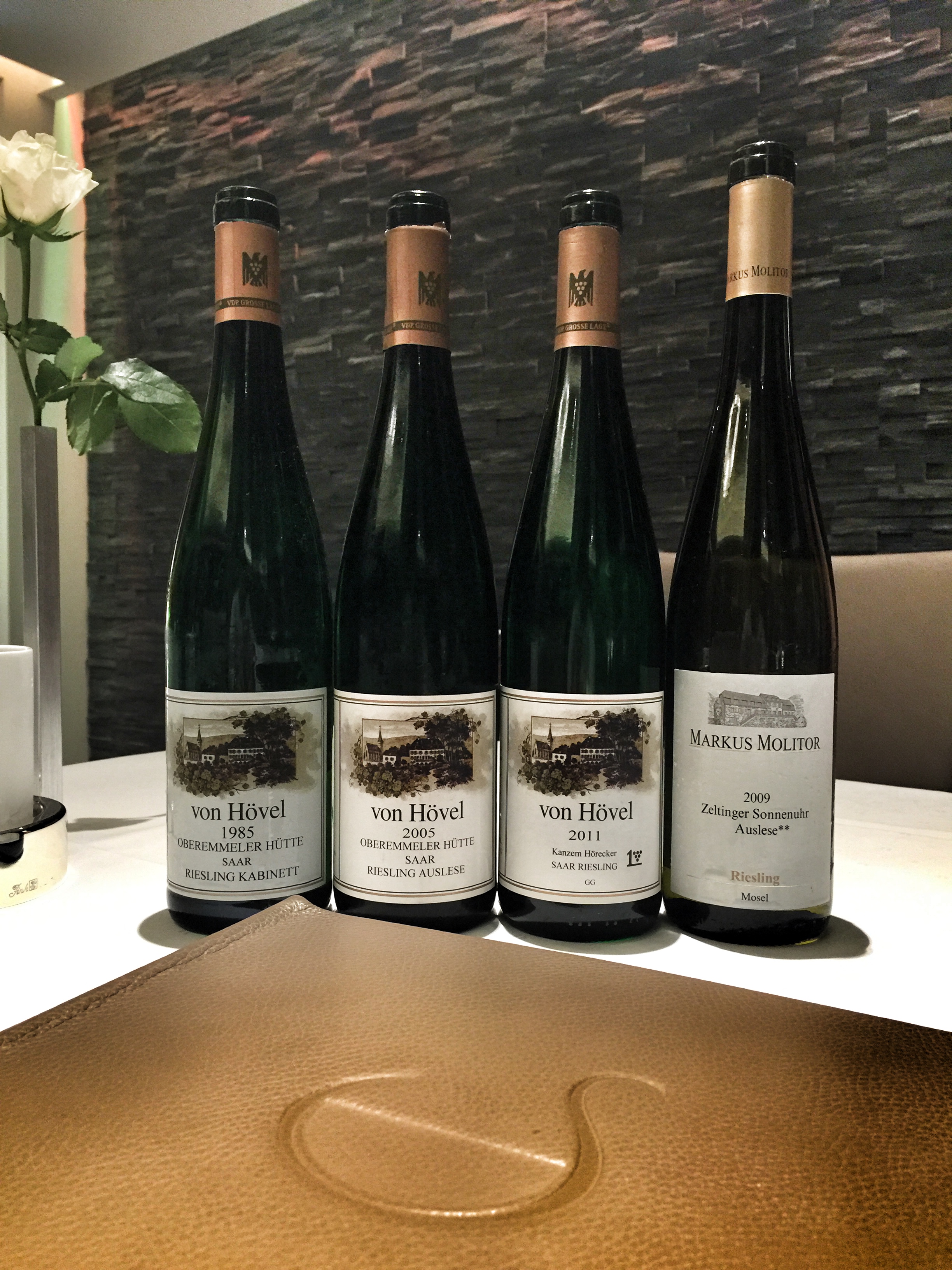 Zum Menü gab es eine mit Daniel und der charmant süßen Sommeliere Adrienne ausgesuchte Auswahl an Rieslingen, die das Menü mMn nochmals aufwerteten.